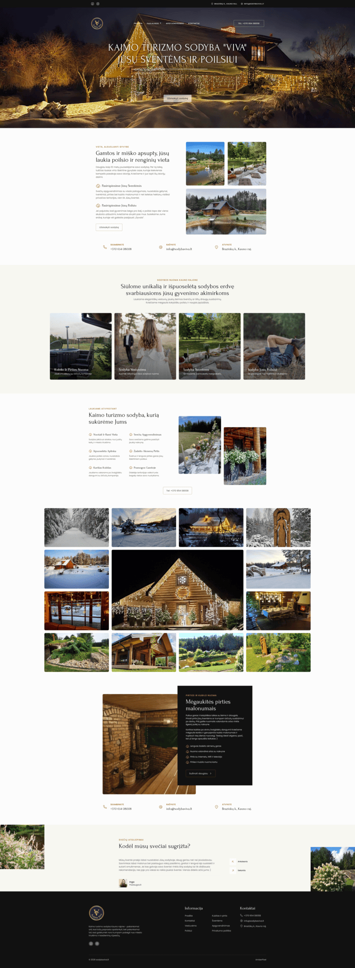 • Socialinio įrodymo integravimas: įdiegta klientų atsiliepimų sekcija, kurioje surinktos realios. Tai tiesiogiai didina pasitikėjimą sodybos šeimininkais ir paslaugų kokybe.